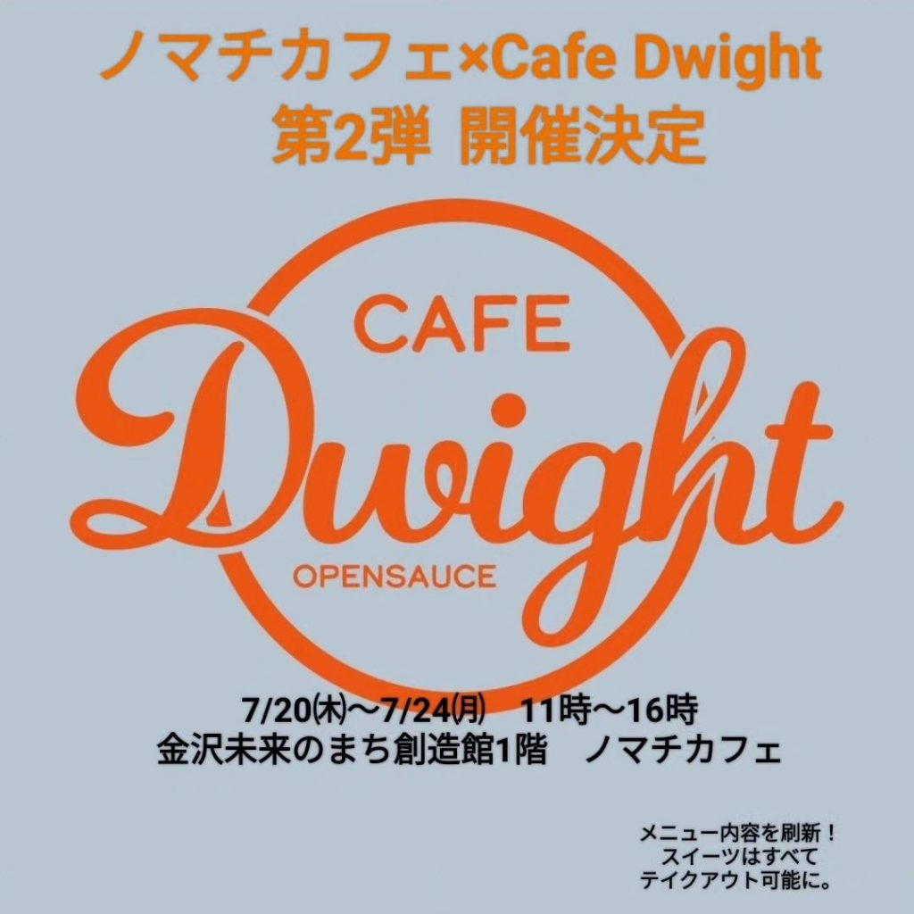 この夏、梅ノ橋のたもとにオープン予定の「CAFE Dwight」(金沢食藝研究所研究員が担当)が、先月に続きノマチカフェに期間限定出店します!